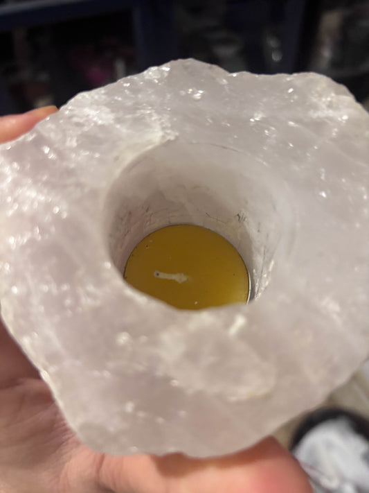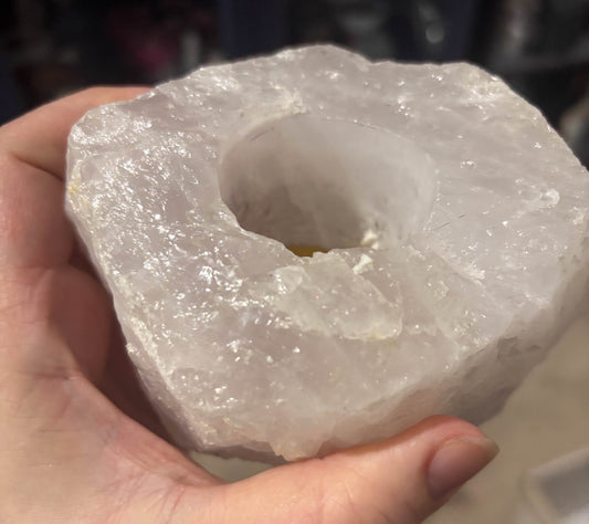 Rose Quartz candle holder #1 (used)