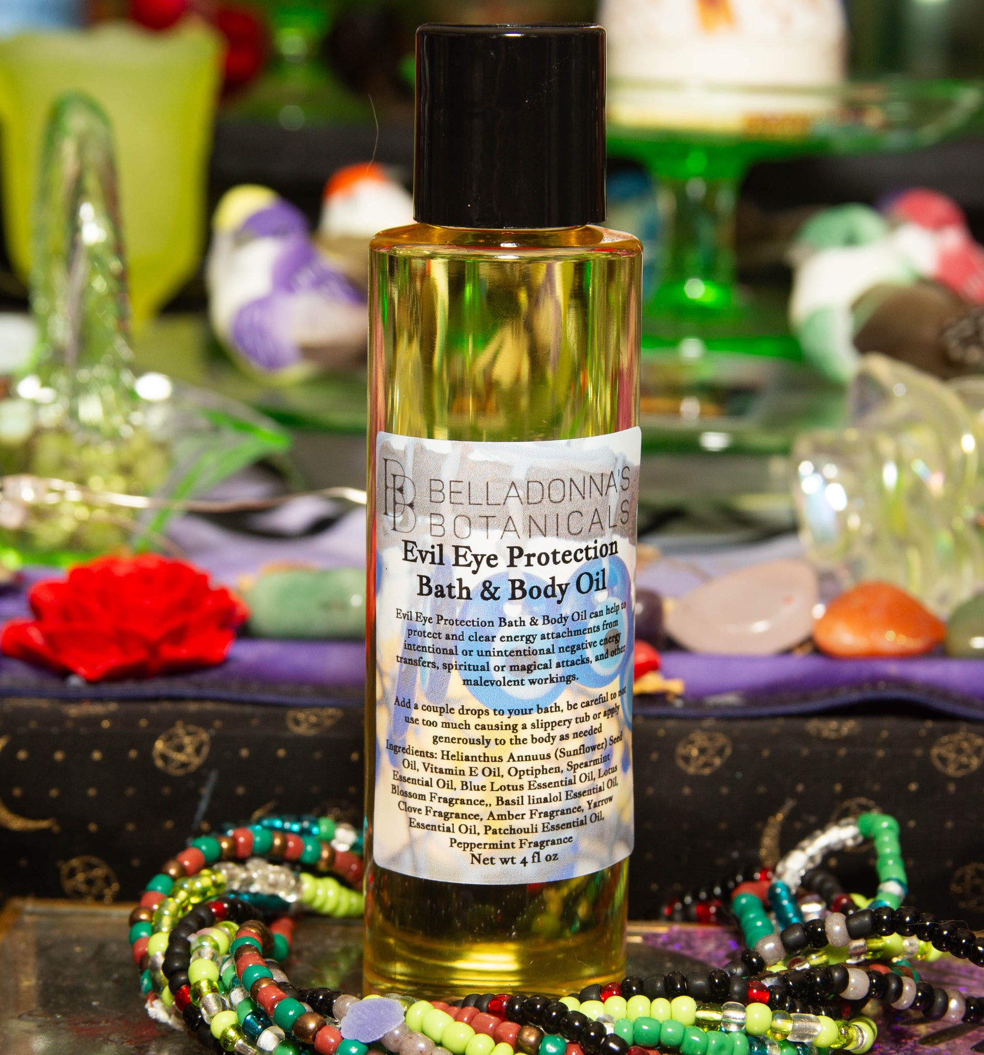 Evil Eye Protection Bath & Body Oil can help to protect and clear energy attachments from intentional or unintentional negative energy transfers, spiritual or magical attacks, and other malevolent workings.