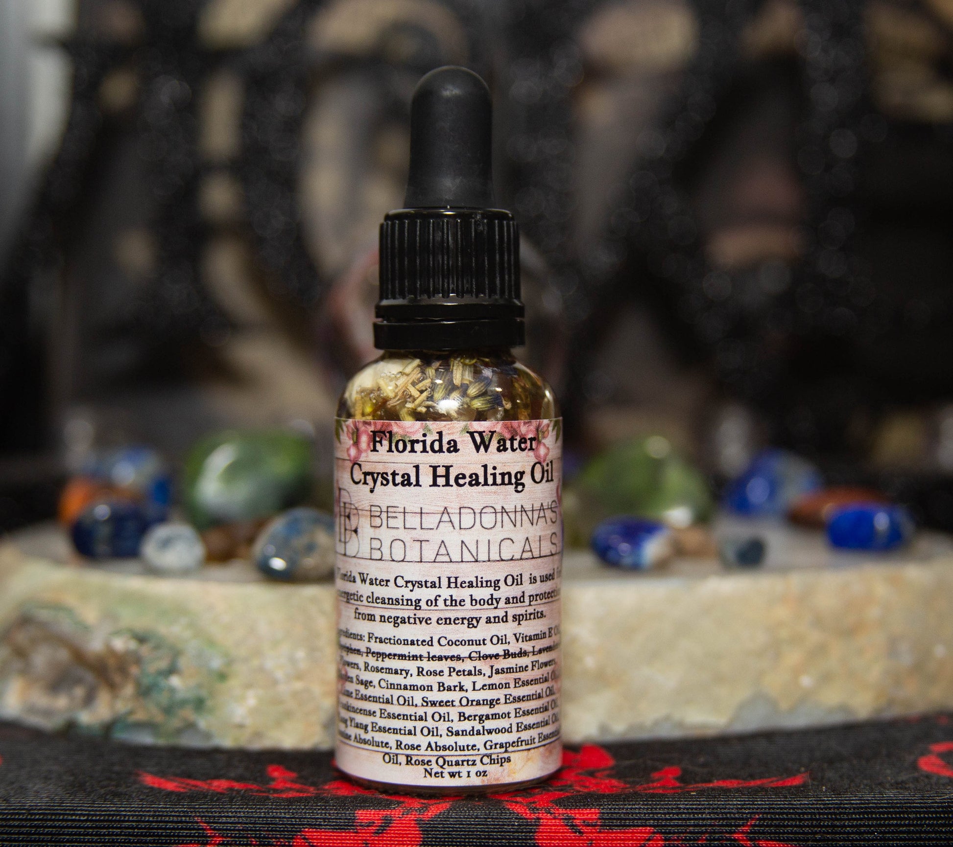 Florida Water Crystal Healing Oil is used for energetic cleansing of the body and protection from negative energy and spirits.