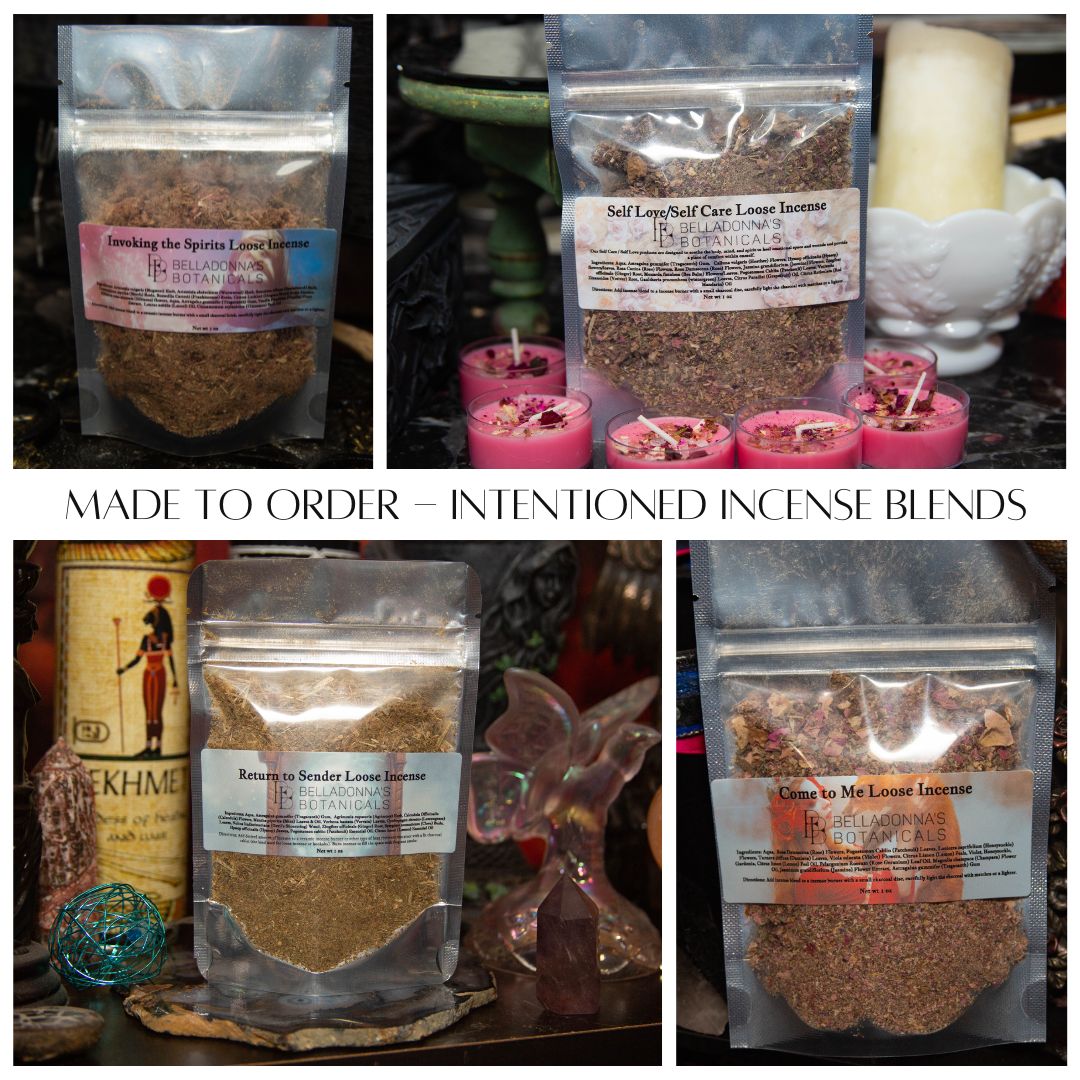 Our Made to Order Intentioned Incense blends for any intentions not otherwise offered in our shop. Each incense blends is a combination of herbs, botanicals, flowers, spices, fragrances, and essential oils that were selected based on the correspondences.