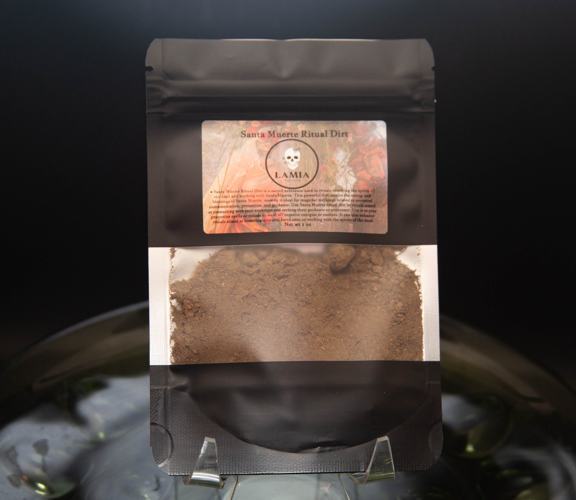 Santa Muerte Ritual Dirt is a sacred substance used in rituals involving the spirits of the dead and working with Santa Muerte. This powerful dirt carries the energy and blessings of Santa Muerte, making it ideal for magickal workings related to ancestral communication, protection, and guidance. Use Santa Muerte ritual dirt in rituals aimed at connecting with your ancestors and seeking their guidance or assistance. Use it in your protective spells or rituals to ward off negative energies or entities. It can also enhance rituals aimed at honoring deceased loved ones or working with the spirits of the dead.
