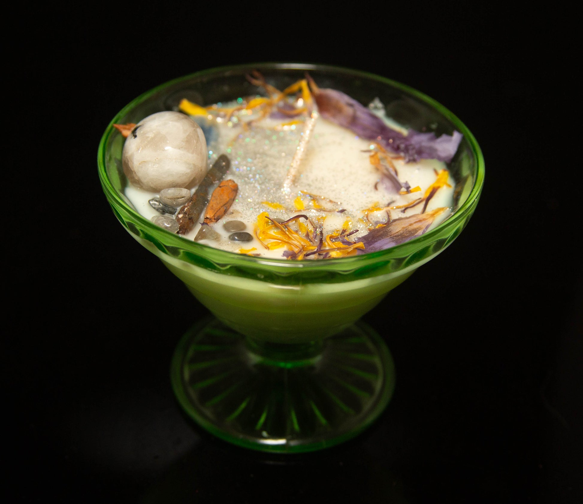 Some of our candles use vintage glassware. We recommend after the candle is finished that you clean the vintage glass and it can be used as ritual tools. If you do not desire to keep them, let us know and we will send you a return shipping label. Contact us at belladonnasbotanicals@gmail.com for more information.