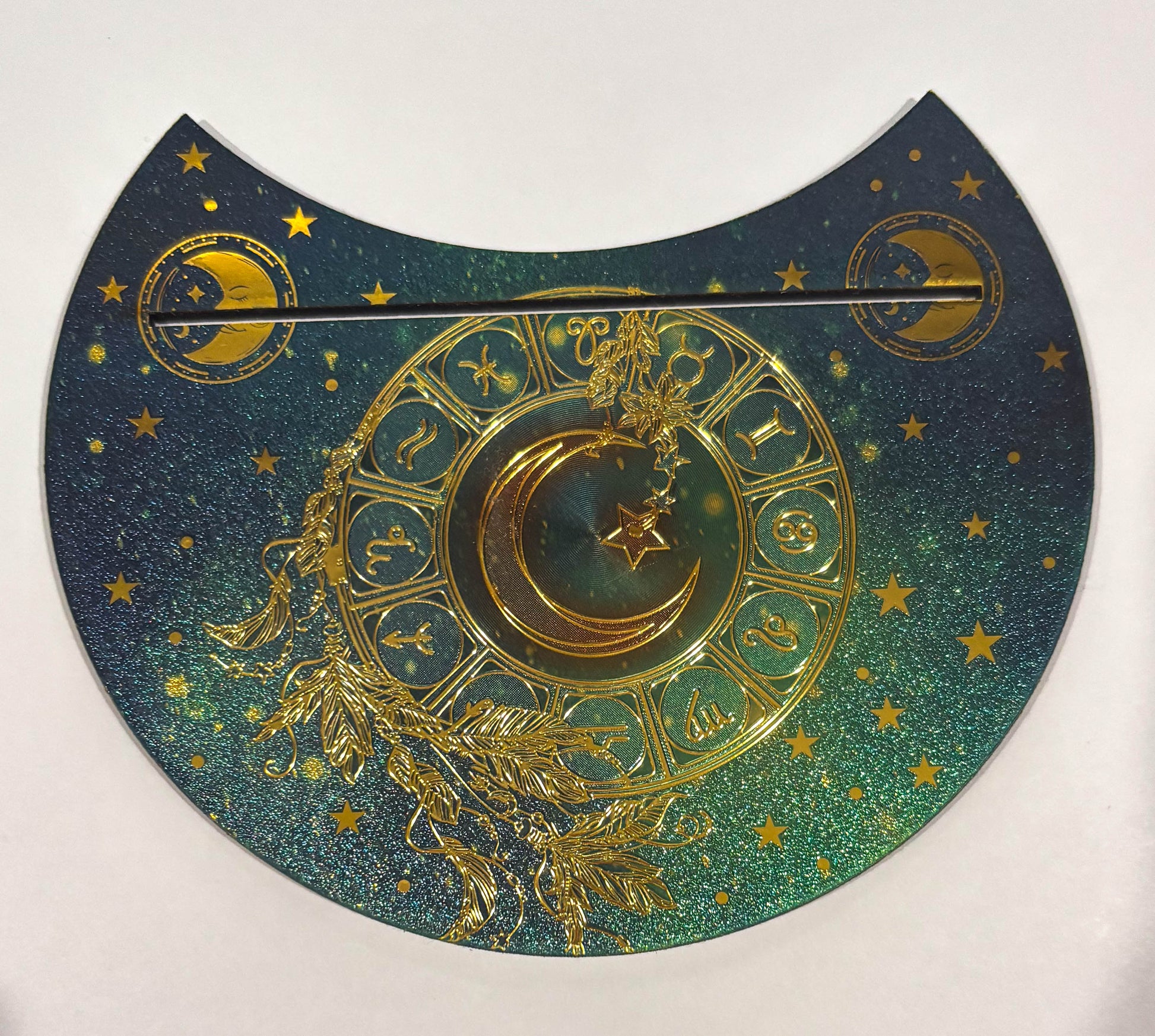 Wooden Crescent Tarot Card Holder Celestial Blue